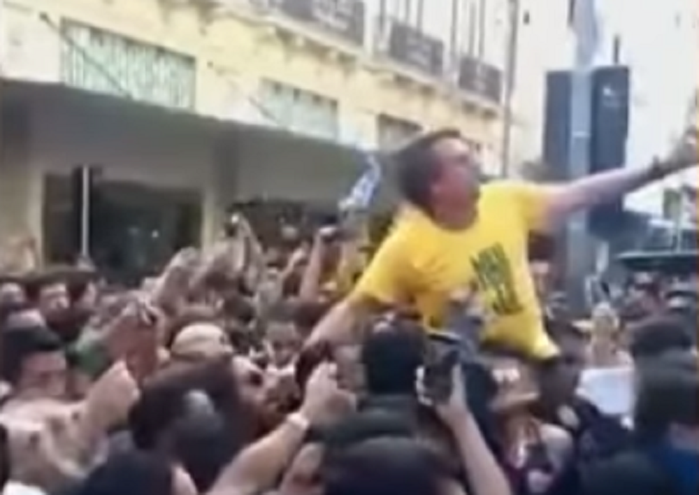 Објављен је тренутак у када је у четвртак избоден ножем Жаир Болсонаро, кандидат крајње деснице на бразилским председничким изборима следећег месеца. Овај контроверзни политичар, који надмоћно води у анкетама за први круг избора у Бразилу 7. октобра, нападнут је док су га обожаваоци носили на раменима кроз град Жуиз де Фора на југоистоку Бразила. На снимку напада види се како је нападач ножем убо Болсонара у стомак. Његов син је на Твитеру објавио како је убоден у јетру, плућа и црева. Одмах је одвезен у болницу на хитну операцију.