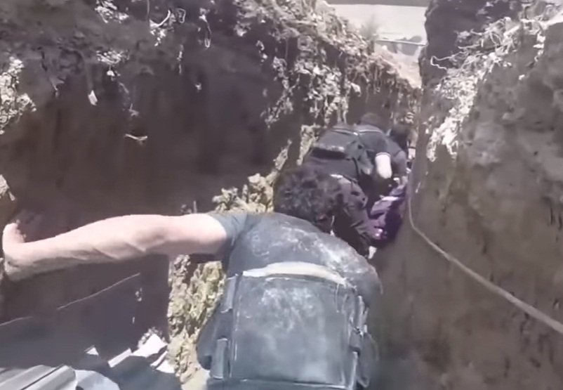 Снимак приказује како се борци спремају за напад, јуре кроз ровове и хапшење једног члана ИД после упада.