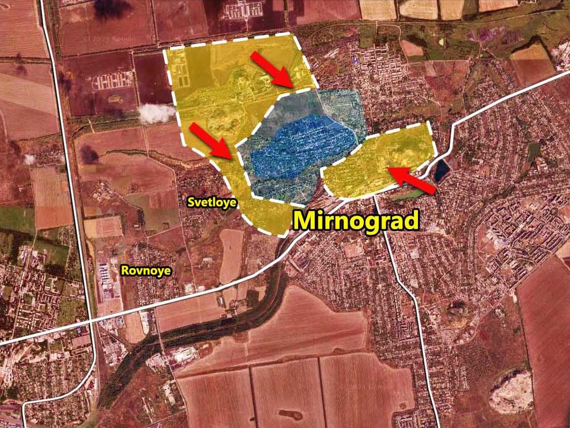 „Министарство одбране РФ је саопштило да наше снаге чисте Мирноград, али је чињеница да је организовани украјински отпор престао. Чак и најтврдокорнији украјински ура-патриоти признају да је све готово. Чак је и DeepStateUA, специјализовани сат повезан са војним врхом у Кијеву, објавио мапу на којој је цео Мирноград обојио као да је тзв. сива зона. >То је фактичко признање да у целом граду више нема укро-војника. Ништа не мења чињеница да ће се можда још и данима налазити понеки украјински војник или мала групица“.