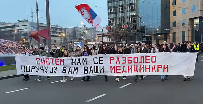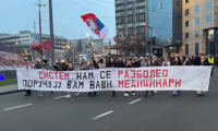 Протест подршке отпуштеној секретарки Медицинског факултета: Студенти кренули ка Палати правде... Студенти и запослени на Медицинском факултету у Београду протестовали су испред Деканата з...