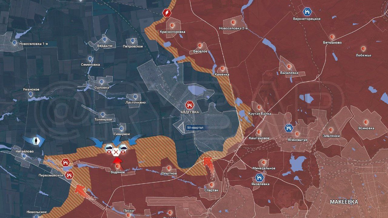 Са јужне стране Авдејевске 1.батаљон 53 механизоване бригаде украјинске војске у последњих неколико дана два пута је покушао да нападне позиције руске војске код Водног. Прво је део 53. механизоване бригаде покушао да поврати изгубљене територије североисточно од Водног које су Руси заузели пре пар дана. Руске трупе су поново одбиле напад.