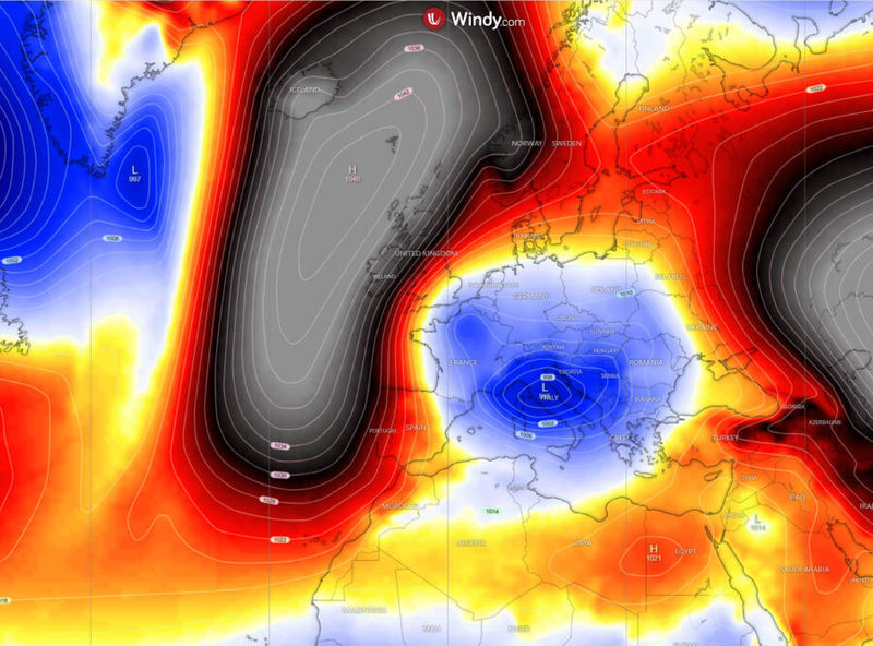 Значајна геопотенцијална аномалија ће се развити у недељу и понедељак, јер се гребен над северним Атлантиком и затворени циклон над централном Европом буду појачавали. Огроман контраст ће бити успостављен између ова два велика временска система.