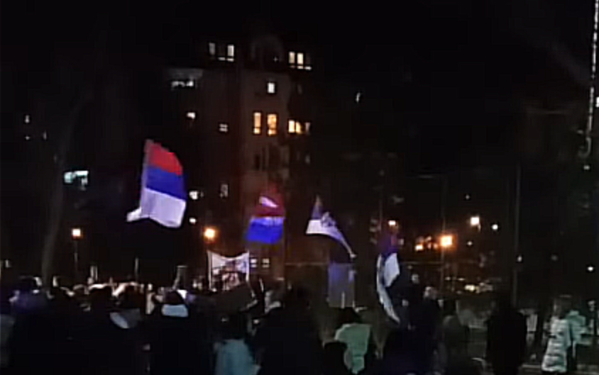 Наиме, на снимку који се дели на друштвеним мрежама, виде се маскирани мушкарци, који цепају плакате на којима се најављује долазак студената.