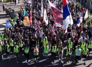 „На обележавање годишњице пада надстрешнице на железничкој станици у Новом Саду, из Београда је данас пешке кренуло око 3.500 студената и грађана, више од очекиваних 2.000. Процена је урађена на основу снимка проласка колоне кроз Земун“, наводи Архив јавних скупова.