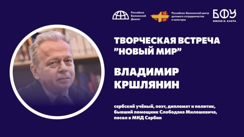 Књига „Нови свет“ Владимира Кршљанина, која објашњава законитости света сарадње, лишеног насиља, „чији су предводници Русија и Кина, а чији је весник била Србија“ – како аутор каже, промовисана је у Москви и више руских градова. Пре неколико дана, промоција је одржана и у Калињинграду на Балтичком федералном универзитету „Имануел Кант“.