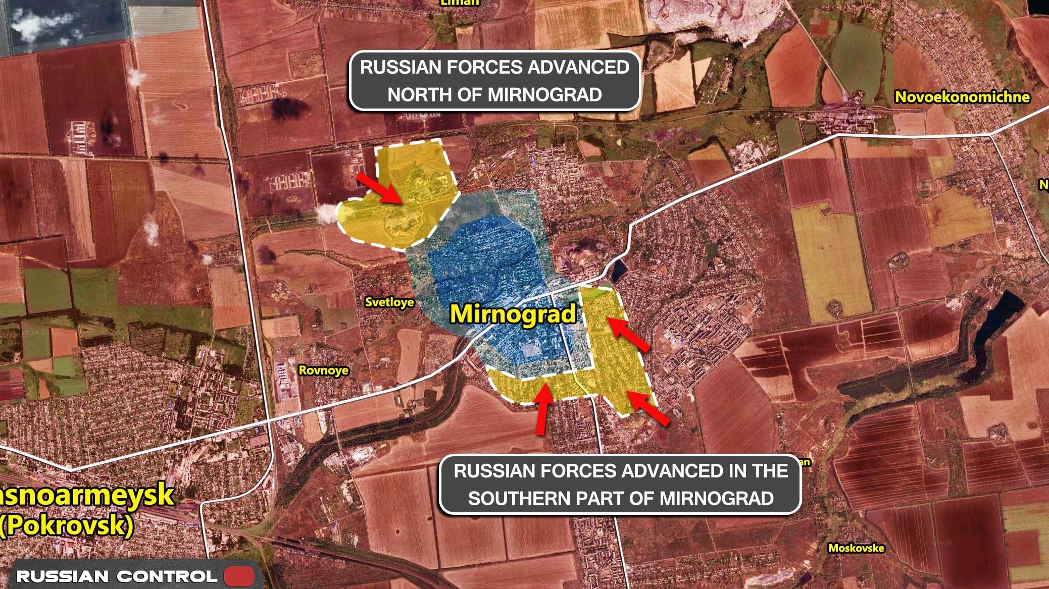 Руске снаге су напредовале у северном и у јужном делу Мирнограда.