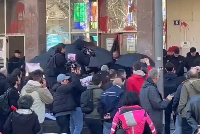 Окупљени грађани гађају фарбом зграду Скупштине Београда уз узвике "Пумпај".