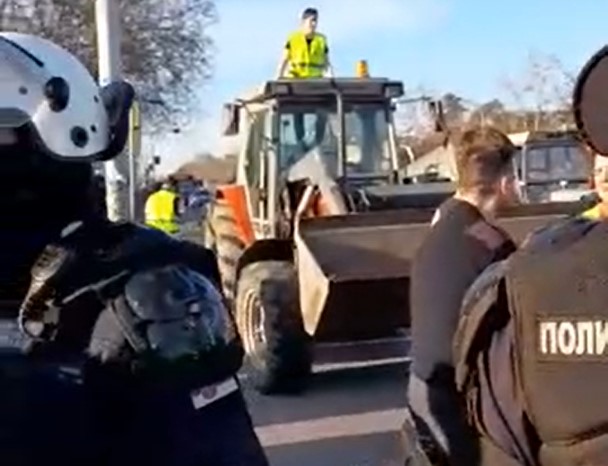 Полицајци су направили кордон и не допуштају студентима и грађанима да са тракторима прођу даље ка центру града.