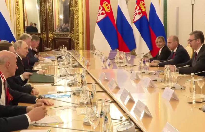 Вучић је на почетку састанка са Путином у Кремљу захвалио председнику Русије на гостопримству и још једном му честитао празник, 80. годишњицу победе у великом отаџбинском рату.