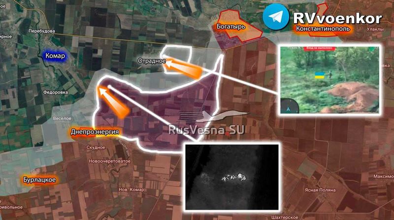 Северно од Дњепроенергије, руске трупе настављају нападе у правцу села Комар.