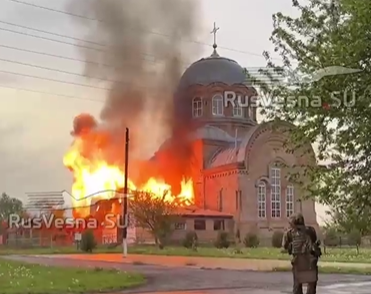 Након гранатирања, црква у селу на првој линији фронта је почела да гори…