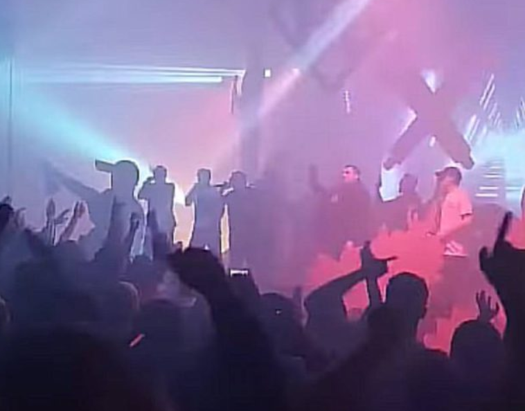 Док је група имала наступ, неколико мушкараца је бенд гађала жутом фарбом, након чега је дошло и до физичког сукоба између окупљених грађана и мушкараца који су изазвали инцидент.