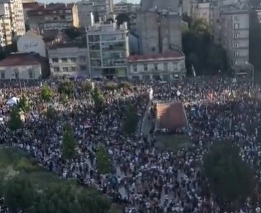 „Министарство унутрашњих послова саопштава да је на непријављеном скупу, који се одржава на Славији, по полицијским проценама, присутно око 36.000 учесника што је сличан број учесника који је био присутан на скупу истих организатора 22. децембра прошле године, а три пута мање него 15. марта“, саопштено је.