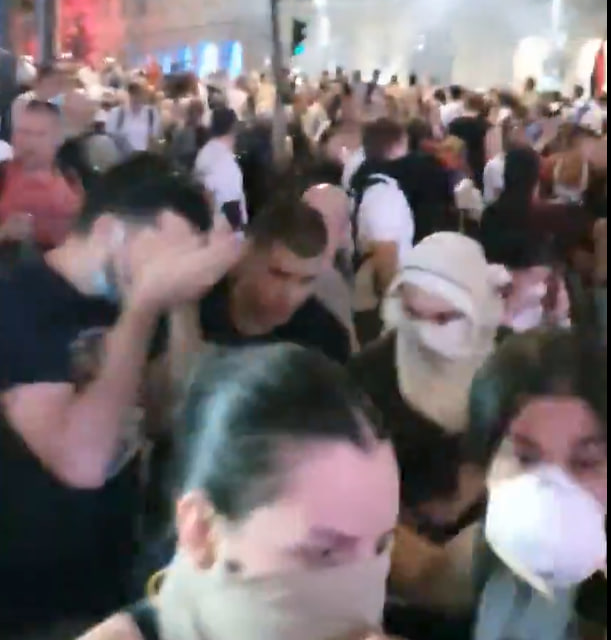 Kod Londona 22.15 ogromne količine suzavca, puno ljudi, krenuo kordon da potiskuje na dole pic.twitter.com/M8RAEGLaWx