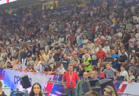 Било је стзвари и које немају много везе са спортом. Навијачи су у крцатој „Београдској арени“ „пумпали“ на полувремену.