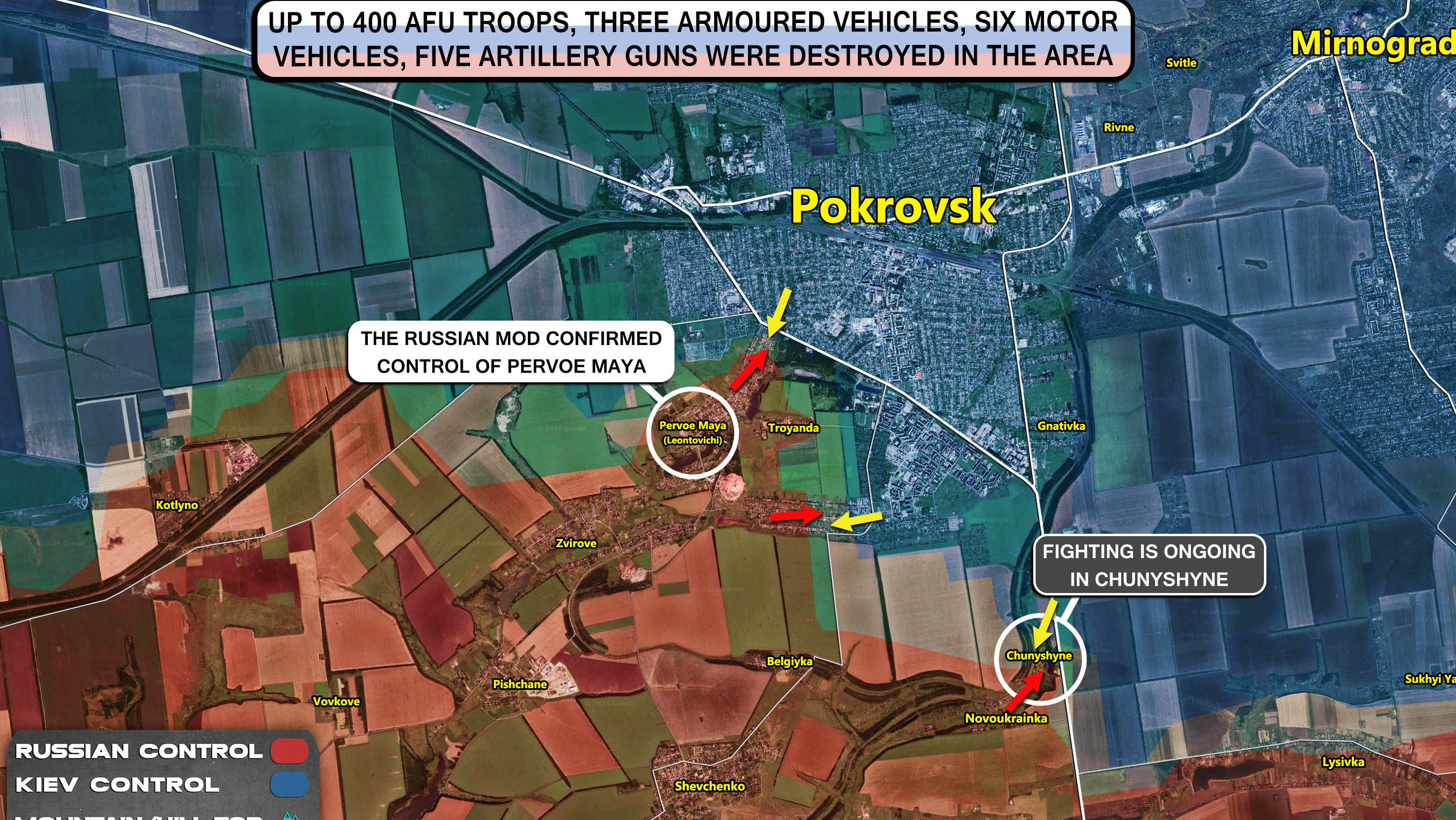Пад Првог Маја представља стално, методично напредовање руских снага, постепено окрећући главу једном од најкритичнијих одбрамбених чворова Украјине у Доњецкој области. Битка за предграђе Покровска је далеко од завршетка, али иницијатива је стално у рукама руских трупа које напредују.