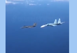 Снимак приказује ловац Су-27 руских ваздухопловних снага како одбија амерички ловац Ф-15 Игл (Орао) од бомбардера дугог домета Ту-22М3. Није јасно где се тачно дешава ова радња.