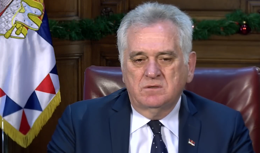 Николић је снимљен у Вучићевој пратњи, на почетку јучерашњег разговора са руским председником Владимиром Путином.