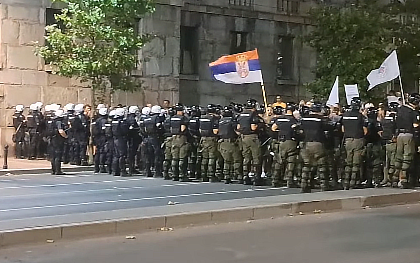 - У Србији се већ дуже време подозрева да насиљу склони појединци намерно поткопавају мирне протесте. У петак је група од око 20 маскираних особа почела да баца каменице и петарде на полицајце. Полиција, међутим, није изоловала ту групу, него је кренула на грађане, породице и старији људи су бежали од пендрека - пише дневник.