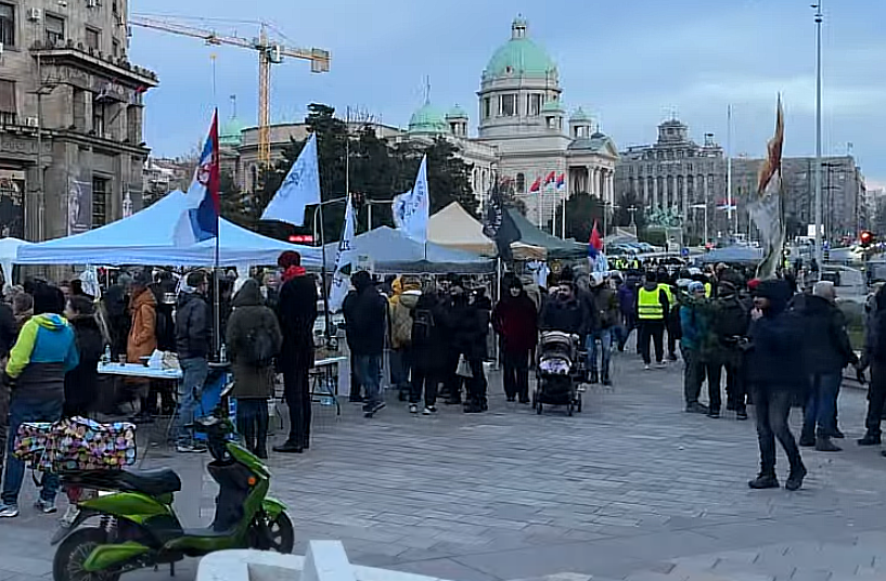 На Тргу Николе Пашића, где се одржава акција, су и три штанда, са натписима „Студент је присутан“, како би грађани могли да потписим подрже студентски захтев за расписивање превремених парламентарних избора, као наставак раније започете такве активности.