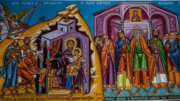 "Звезду су 40 дана пратила тројица мудраца, Гашпар, Балтазар и Мелхиор. Стигавши у Јерусалим, у витлејемској пећини, над којом се зауставила звезда, поклонили су се детету као цару над царевима и даривали га златом, а потом тамјаном као Бога и смирном као првосвештеника и учитеља".