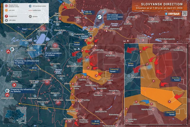 Јуришне трупе руске Јужне групације очистиле су околину недавно ослобођеног Каленикија и развијају нападе према шуми Долги. Заузимање овог масива омогућиће успостављање контроле ватре над украјинским путевима снабдевања из Николајевке.