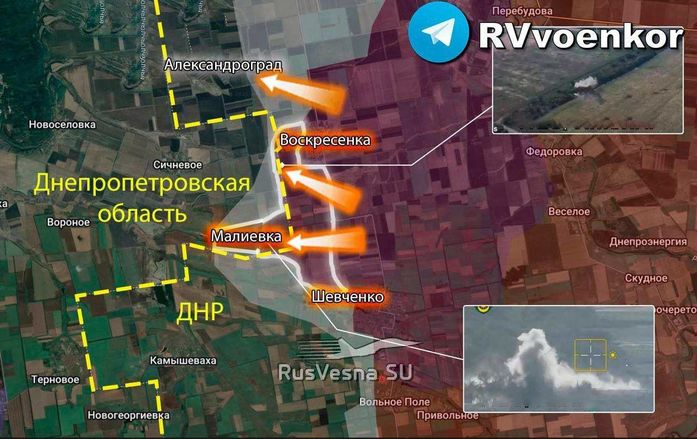 „Руси су већ прешли границу Дњепропетровске области: напредују у области Малејевке и у правцу села Сечнево (раније Јанварскоје)“, јуче су са закашњењем признали украјински аналитичари.