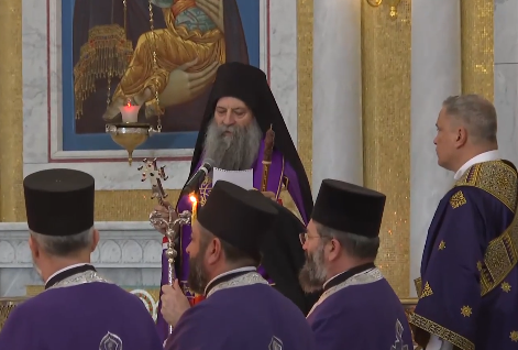 Patrijarh je molitvu za upokojenje pročitao poimenice za svih 16 nastradalih u tragediji 1. novembra prošle godine u padu nadstrešnice u Novom Sadu - Saru, Valentinu, Đorđa, Milicu, Nemanju, Anđelu, Miloša, Stefana, Sanju, Goranku, Vukašina, Milevu, Đura, Vaska, Anju i Vukašina.