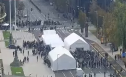 Kako su saopštili MUP i BIA organizovana grupa učesnika neprijavljenog skupa, okupljena u ulici Kneza Miloša, napala je građane koji su se nalazili na prijavljenom javnom skupu, u Pionirskom parku, bacajući različite predmete i pirotehnička sredstva u pravcu okupljenih.