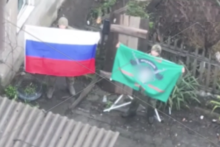 Na drugom snimku, ruski vojnici su razvili rusku zastavu u oslobođenom selu.