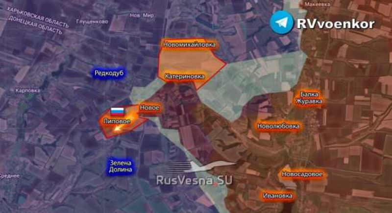 RVvoenkor, uticajni ruski dopisni Telegram kanal, objavio je mapu sukoba i operacije u selu Lipovoje: