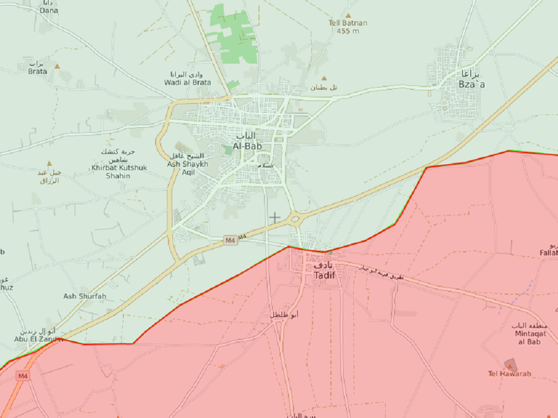 Као одговор на то, побуњеници подржани од стране Турске испалили су неколико пројектила на положаје САА у граду Тадефу, који је јужно од Ал-Баба.