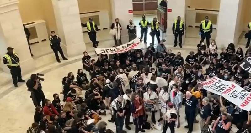 Подсетимо, више од 300 демонстраната упало је у зграду на Капитол хилу у Вашингтону захтевајући престанак сукоба у Појасу Газе. Протест, који су заједнички организовале организација Јеврејски глас за мир (ЈВП) и група Ако Не Сада... почео је у подне испред здања на Капитол хилу.