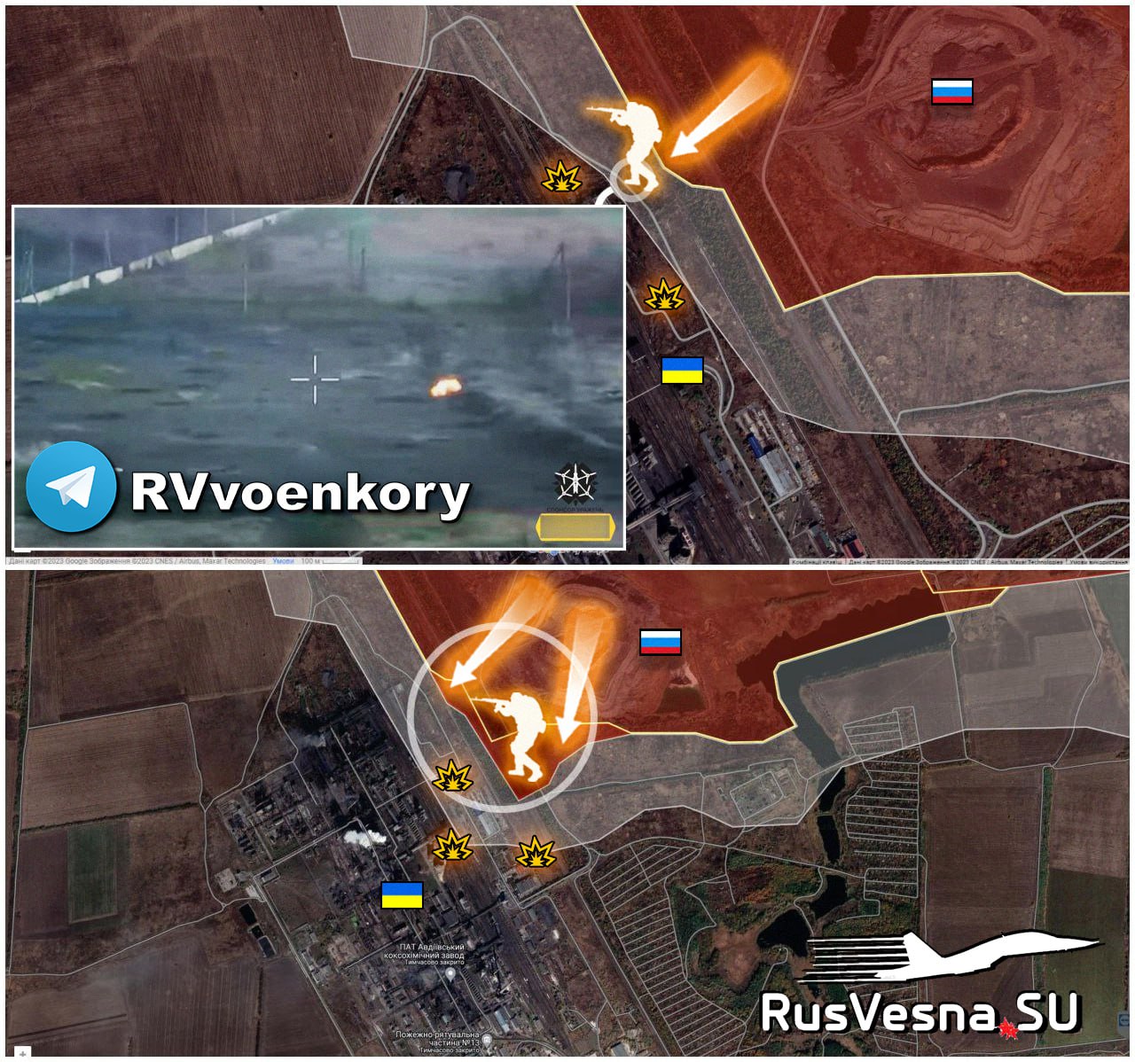 Руска армија је у офанзиви, остварујући напредак упркос жестоком отпору Украјинских оружаних снага (ВСУ). Кључна борбена подручја укључују Степовое, Очеретино, Новокалиново, као и индустријске зоне около Коксохимзавода и Авдејевке.