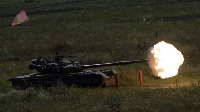 '’Визир'’ који је дограђен на куполу тенка Т-80БВ је заштитио борбено возило када је оно погођено дроном.
