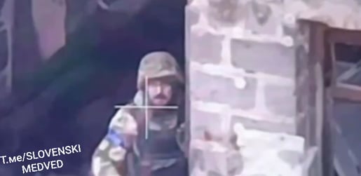 У једном моменту се појављује украјински војник који није свестан шта га чека. На снимку се види човек који маше ка камери, а онда креће у бекство.