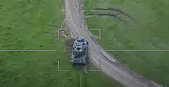 Дрон је у предњи део борбене машине.