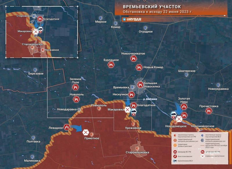 На јужно-доњецком фронту Руси су успели да поврате насеља Садовое и Урожайное.