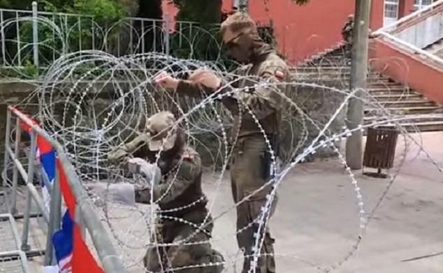 Метална ограда је још на улицама које воде ка општинској згради и прилаз овом објекту није могућ. Бодљикава жица остала је и на споредним прилазима општинској згради.