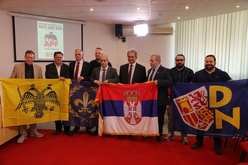 Председник Српске деснице Миша Вацић најављујући Грифина рекао је да је он већ трећи пут у Србији на његов позив. На скупу су учествовали представници десничарских партија из Грчке, Румуније, Италије, Шпаније, Француске, Немачке и Велике Британије.
