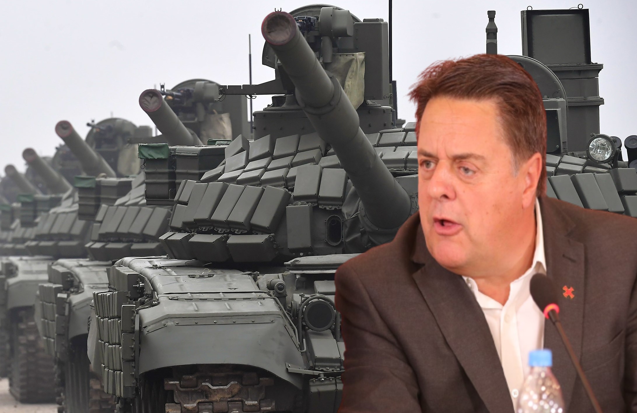- Даћу вам неколико примера из Британске армије. Објављено је прошле недеље у Парламенту да ће за попуну 25.000 војника који ће бити добро наоружани Великој Британији трабати 5-10 година. Знате ли колико исправних борбених тенкова Британија има сада? Има 40 исправних тенкова, десет пута мање него Србија. Објављено је да, пошто сву тешку артиљерију и муницију дајемо Украјини, да Британија нема више муниције за тешку артиљерију. То није ни важно јер Британије нема више ни тешку артиљерију којој је та муниција потребна. Све је дато Украјини.