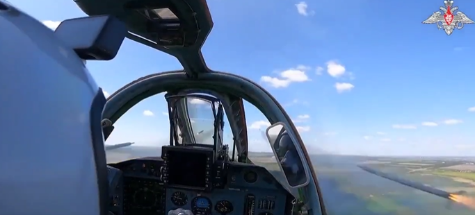 У ниском лету, са мале висине, руски пилоти у ловцима-бомбардерима Су-25 извели су ракетне ваздушне ударе уништавајући оклопна возила Оружаних снага Украјине.