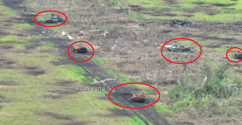 Међутим, руски снимак показује последице пробоја: још једно гробље оклопних возила од многих сличних сада је такође на новој деоници Работино-Вербовоје.