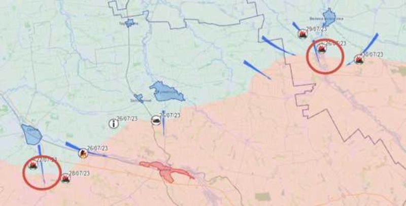Губици Оружаних снага Украјине износили су више од 50 милитаната, тенк, два борбена возила пешадије, три возила, артиљеријски систем М777 (САД), самоходне топове Цезар (Француска) и самоходне топове Краб (Пољска).