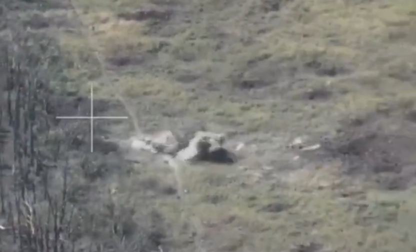 На овом снимку се види група украјинских војника која се креће, а затим зауставља, да би након свега неколико секунди доживели страховит удар.