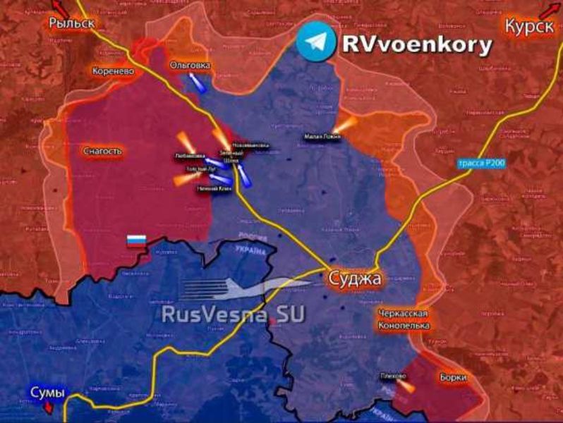 Алаудинов то није рекао, али су Руси већ почели да пресецају територију коју још држе Украјинци по линији Новоивановское-Малаја Локња. Истовремено се Примичу Суџи и са севера и са југа.