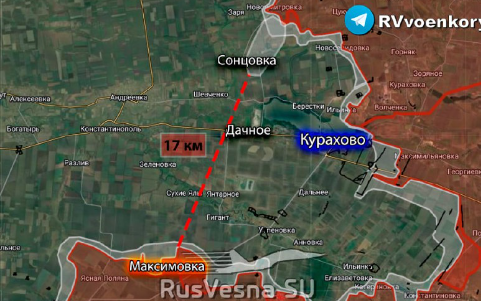 Источно од Курахова, руске трупе настављају да притискају уз подршку оклопних возила у правцу и у области јаруга Долгаја. Од Победе до Константиновке напредовали су одсеком ширине до 3,8 км до дубине до 1,5 км. Источно од Богојавленке, руске трупе су напредовале дуж јаруга и шумских појасева у области ширине до 3,6 км до дубине од 1,6 км.