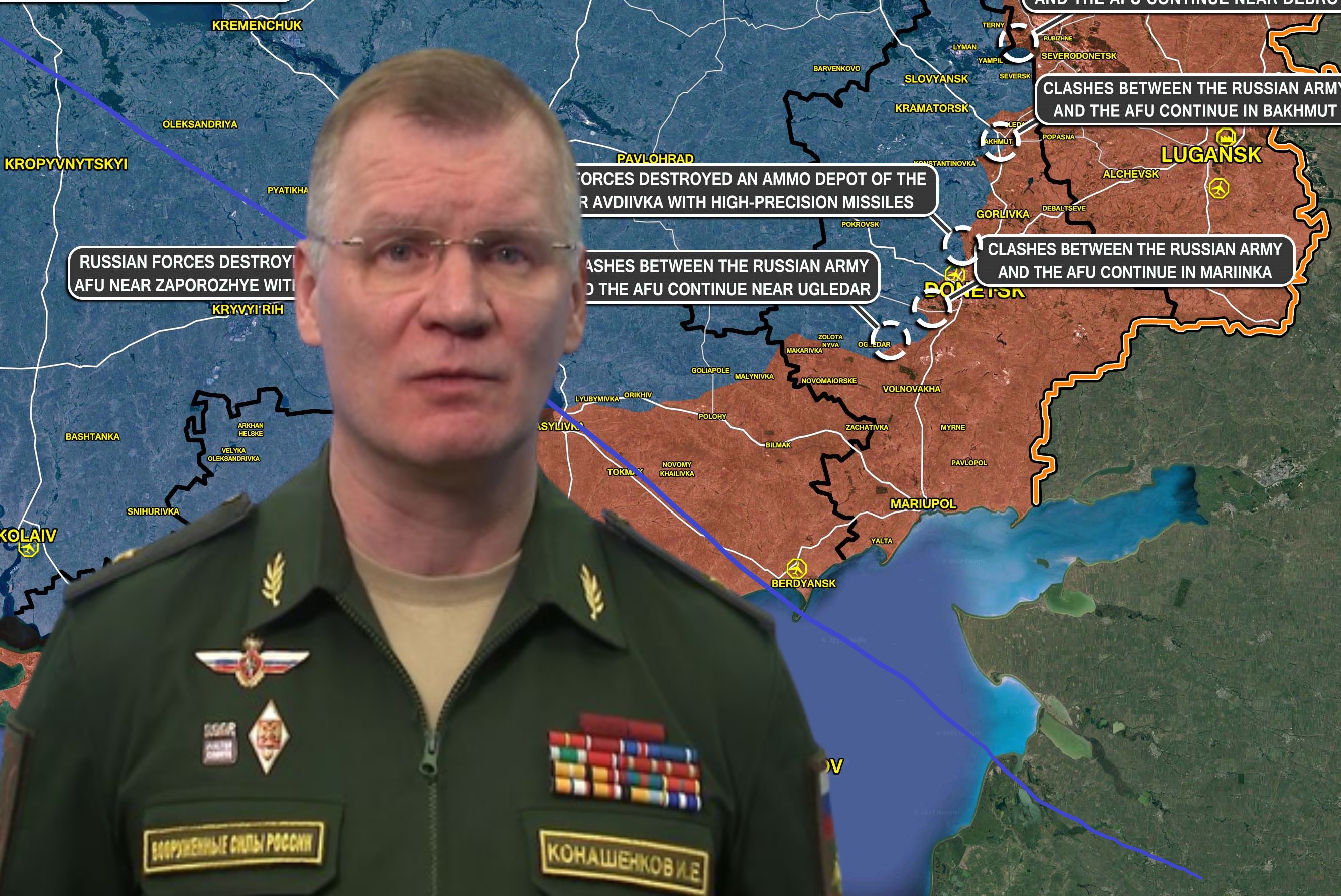 ПВО средства су оборила девер америчких „хајмарса“ и две бомбе ЈДАМ. Уништено је 93 украјинских дронова у ЛНР-у, ДНР-у и Запорошкој области. речено је на брифингу Министарства одбране.