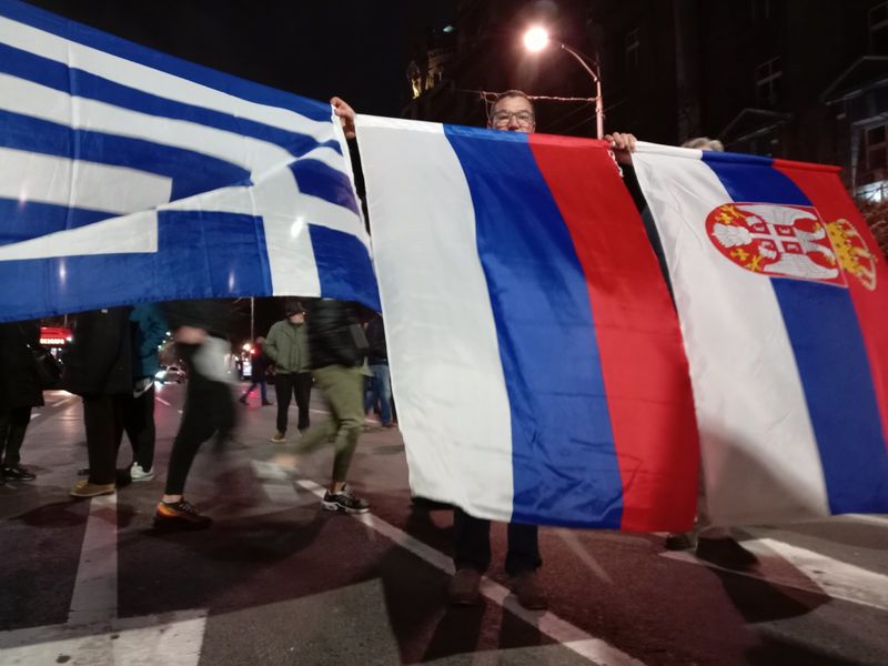 Након говора испред Генералштаба и Владе Србије, народ је кренуо у протестну шетњу до руске цркве на Ташмајдану, где је упалио свеће жртвама терористичког напада у Москви.