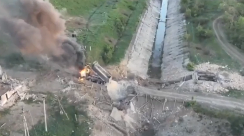 Нови докази о овој ситуацији стигли су са недавно објављеног снимка са дрона, на којем се види како је погођен камион-кипер.